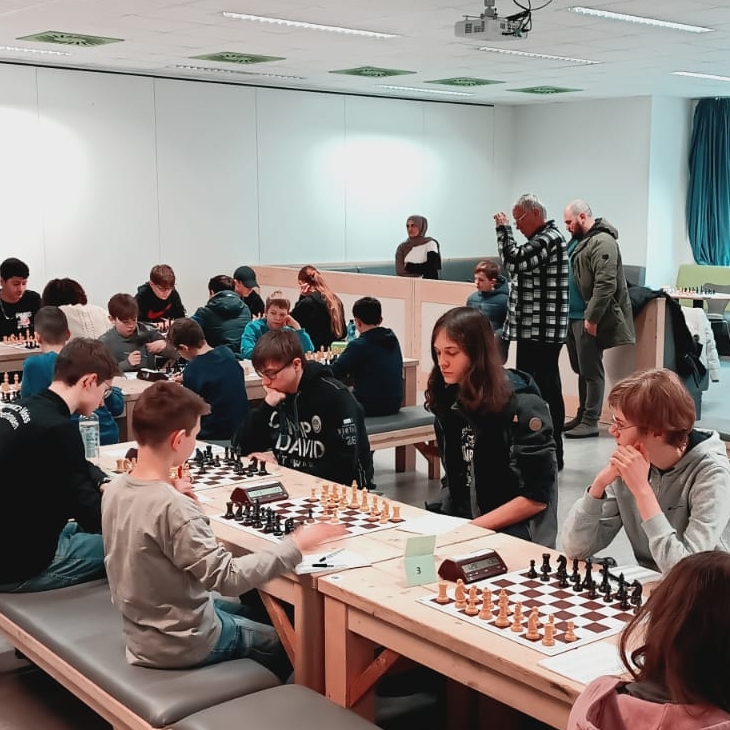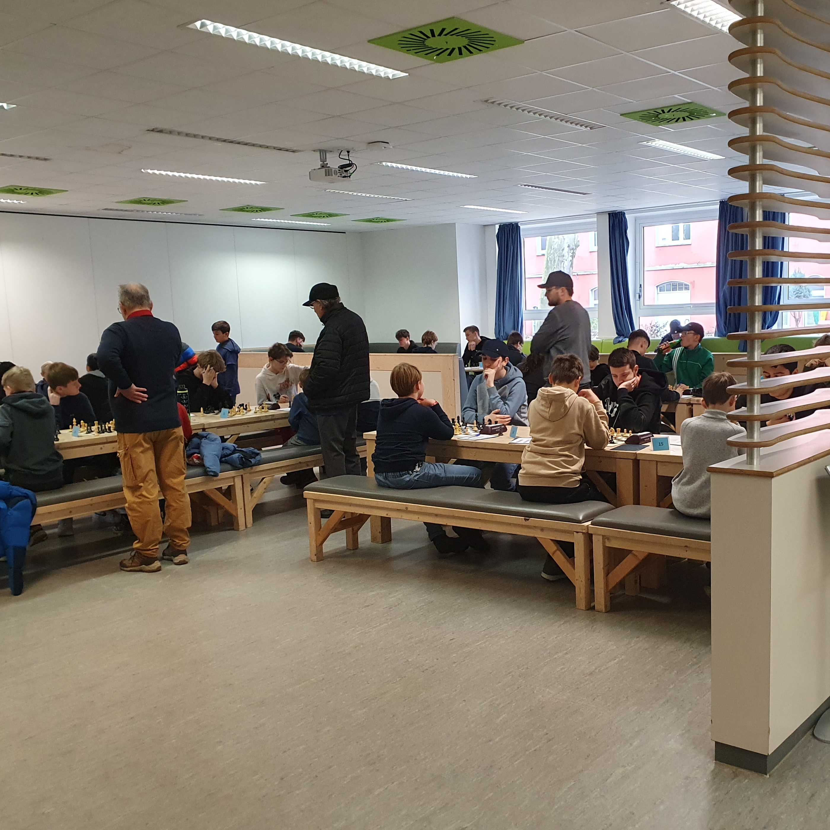 Beim 3. Spieltag der Jugendliga waren die Räumlichkeiten etwas anders als sonst. Da am danach folgenden Montag eine Veranstaltung in der Schule stattfand, waren die üblichen Räume verschlossen. Glücklicherweise konnte sowohl das Catering als auch die Partieanalysen in andere Räume verschoben werden. Ob Spieler oder Eltern durch die längeren Wege das Ziel von 10.000 Schritten pro Tag erreichen konnten, ist nicht bekannt.